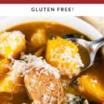 Nothing says healthy comfort food like a big bowl of this Butternut Squash and Sausage Soup during the cool fall months. It's made with a savory broth that's perfect for dipping some warm, crusty bread.